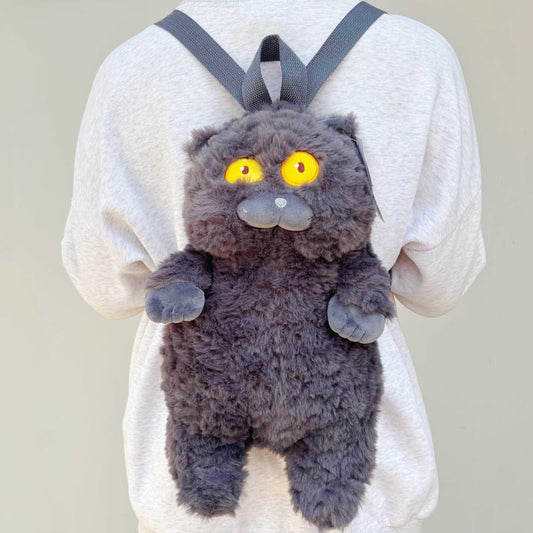 Sac à dos en peluche avec motif de chat noir drôle et moelleux