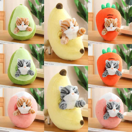Peluche chat kawaii dans un fruit - Fusion originale de fruits et d'animaux de compagnie pour la décoration